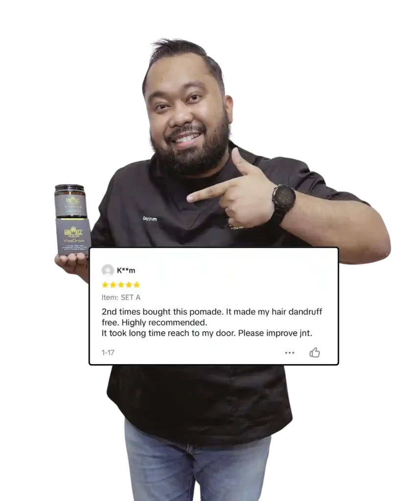 *Penafian: Vitagrow adalah pomade rambut, bukan ubat hospital atau pengganti rawatan professional.